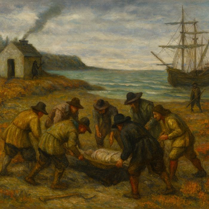 - New Year’s Day : north wind with a merciless frost. As a consolation, the crew receives wine as an extra allowance. The crowding and poor hygiene bring dysentery. Many lie in their bunks weak from scurvy. The first sailor dies on 8 January.