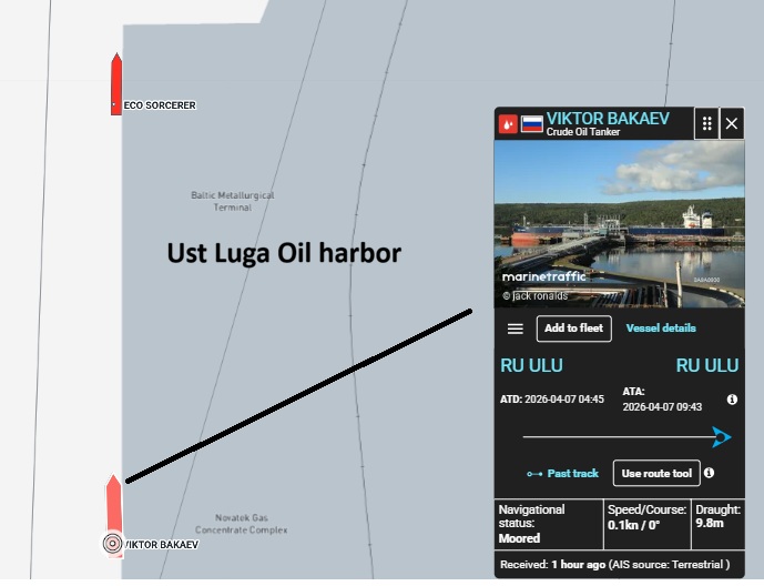 Traffic in Primorsk during the first week of April 2026 is almost paralyzed. Today, April 7, only one of the three berths is servicing a tanker. According to the same source, Marine Traffic, only one tanker from the shadow fleet is visible departing Primorsk on the route down to Gotland. Can be interpreted as the only delivery during the last 24 hours, with the reservation that captains may have turned off the ship’s AIS.