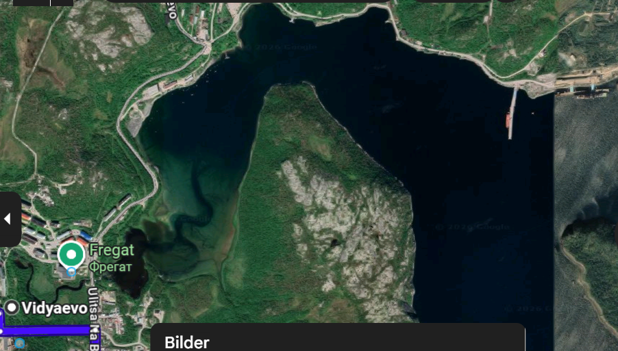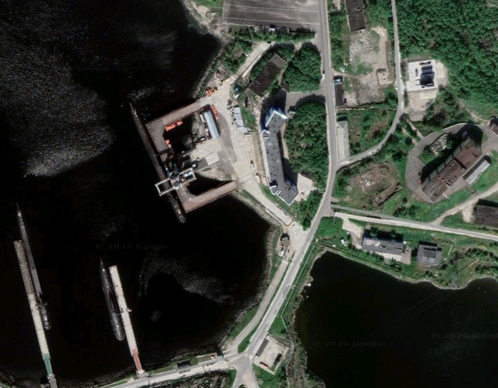 Ara Bay is one of the two fjords that make up the Vidyayevo base < Wikipedia >. While the neighboring Ura Bay is often used for logistics and smaller vessels, Ara Bay is the primary location for the Russian Northern Fleet’s 7th Submarine Division.