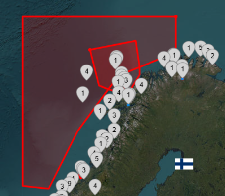At the same time, russian exercises are underway on a large part of the Kola Peninsula, along the Norwegian/Finnish border and along the coast towards Murmansk. The map warns of the Northern Fleet’s missile firing in the Barents Sea, north of Norway’s maritime border.